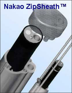 The Nakao ZipSheath was invented in order to decrease transmission of infection during flexible endoscopy. The endoscope is designed to visualize hollow organs and contains channels through which surgical instruments are passed, and bodily fluids are suctioned. A long and arduous process of washing and sterilizing the endoscope is necessary after each procedure. The process entails manual washing & brushing of the channels and outer surfaces, sterilization, and subsequent re-washing in order to remove the toxic detergent. The effectiveness of the cleaning process depends entirely on the assistant's adherence to protocol. Studies have shown that even when protocol is followed to the letter, micro-organisms remain in the endoscope's channels. The reason for the difficulty in cleaning an endoscope properly is its elaborate passageways and narrow channels wherein adherent bio-burden is not always evident or easily reachable. To make matters worse, the chemicals used for cleaning an endoscope to are toxic and harsh, and may cause skin and eye injuries to the nursing staff. The Nakao ZipSheath consists of a protective sleeve sealed with a double zip-lock mechanism. The distal tip of the endoscope is covered by a transparent air-tight tip with channel liners, while the endoscope shaft is encased by the sealed sheath. At the end of the procedure, the sheath is simply unzipped and discarded. This prevents bio-burden from entering the channels and encasing the outer shaft of the endoscope. Once the sheath is removed, the endoscope requires rinsing before being placed in the sterilizer. A ZipSheath with dilators and compression balloons may be used for treating strictures, or hemorrhage from esophageal varices. Sheaths with multiple channels enable insertion of operative instruments. The most recently issued patent (6,929,601 B2) discloses a sheath with longitudinal tear string such as used to open a chewing gum wrapper, enabling simple sheath removal.